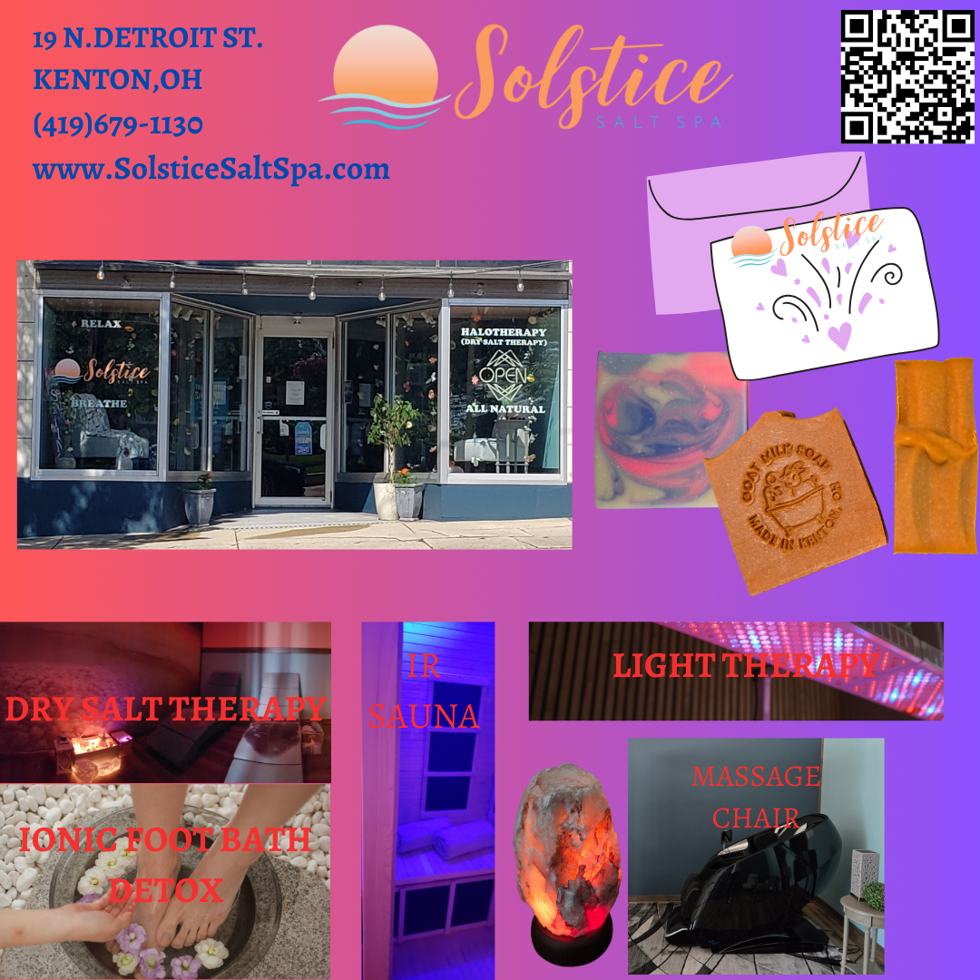 πππππππ πππππππππ: Located in historic downtown Kenton, Solstice Salt Spa is a locally owned wellness destination offering touchless, non-invasive, and natural therapies in a peaceful setting—making it a relaxing retreat for both residents and visitors.