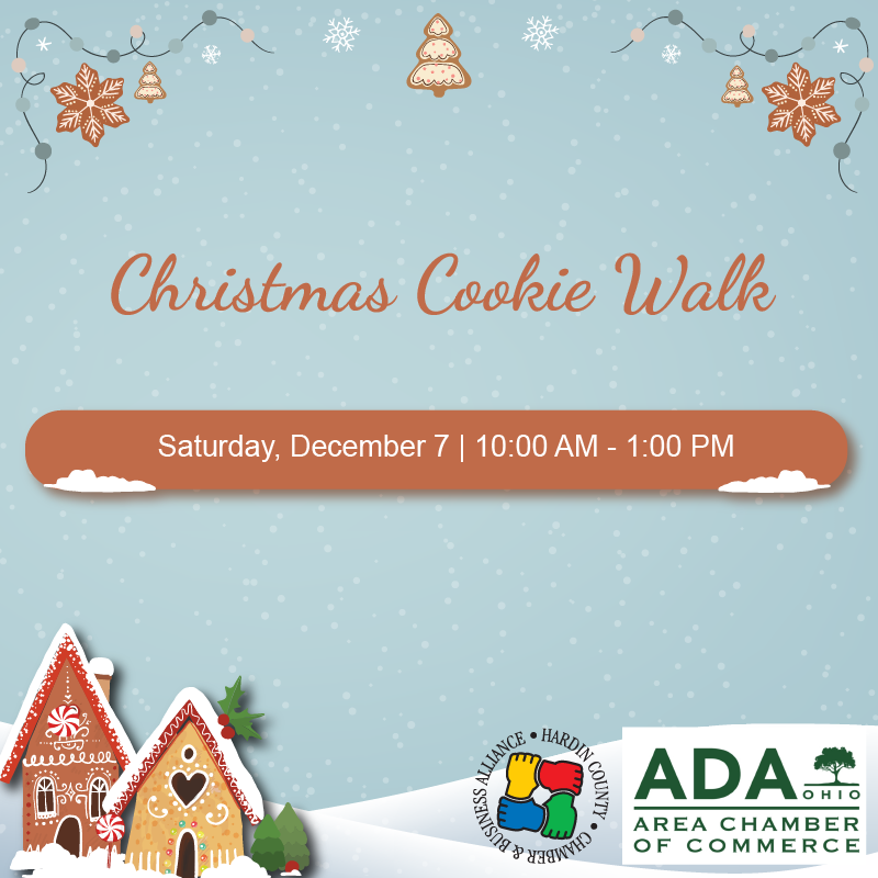 Enjoy a fun-filled day of holiday shopping and delectable cookies at the Christmas Cookie Walk on Saturday, December 7 from 10:00 AM – 1:00 PM. This exciting event promises to be a great way to get into the holiday spirit, spend time with family and friends, and support our local small businesses. Participants of the Christmas Cookie Walk will receive a commemorative soft-sided cooler bag. Collect a cookie or special holiday treat as you visit each of the participating locations. With over 15 participating locations, it's the perfect opportunity to wrap up your holiday shopping, indulge in delicious holiday treats and explore the beautifully decorated storefronts of Kenton and Ada. A complete list of participating locations will be provided to participants at check-in on Saturday, December 7. Registration will close at 11:30 PM on Friday, November 29. $20 per participant Each participant will receive a commemorative soft-sided cooler bag and list of participating locations. Participants will collect a cookie or holiday treat at each participating location. Participants will check-in at the location you select on the registration form. Check-in will take place on Saturday, December 7 from 10:00 - 10:30 AM.