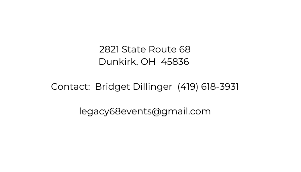 Located in Dunkirk, Legacy Sixty-eight Event Venue offers a versatile and welcoming space ideal for weddings, corporate events, parties, and community gatherings.